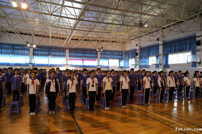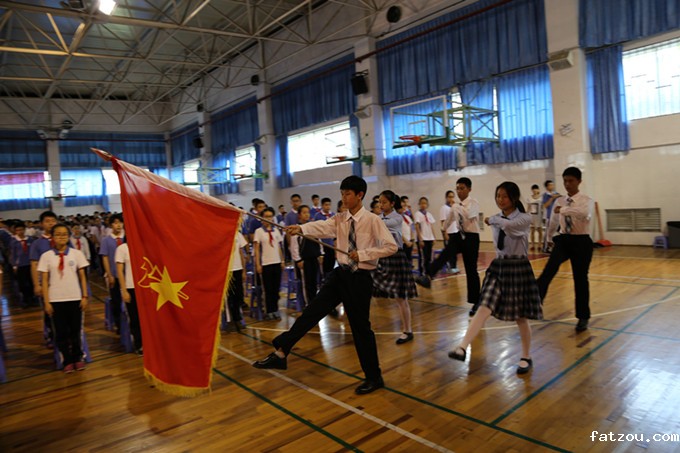 大会第一项是出队旗、行队礼。初一年级国旗队同学身穿礼服,早已到位。在出旗曲的旋律下,他们步伐整齐,英姿飒爽,青春飞扬,圆满完成了既定任务。