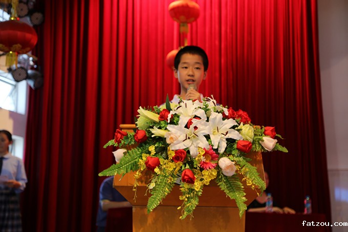 大会第二项少先队员代表郑楠泓同学讲话。他说:红领巾见证了我们每一天的成长;红领巾目睹了我们每一天的可喜进步。是少先队的红领巾,让我们从小立下了远大的志向;是少先队的敬礼,让我们明白了人民利益高于一切的道理;是少先队的队旗,引导了我们为共产主义而时刻准备着。