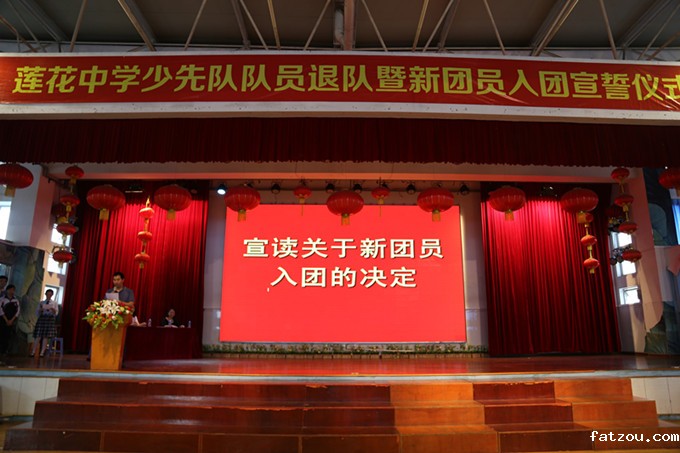 大会第五项是学校团委白传开书记宣读关于新团员入团的决定。他希望新团员能把入团作为自己新的起点,认真履行团员义务,在以后的学习、工作中,能牢记团的纪律,以自己的实际行动为团旗增光添彩,在各方面为其他同学树立榜样,戒骄戒躁,不断进取,力争取得更大的进步。