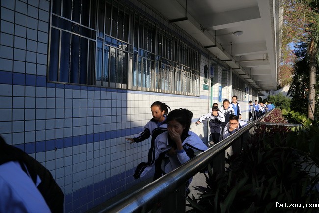 我校北校区进行灾难逃生演习