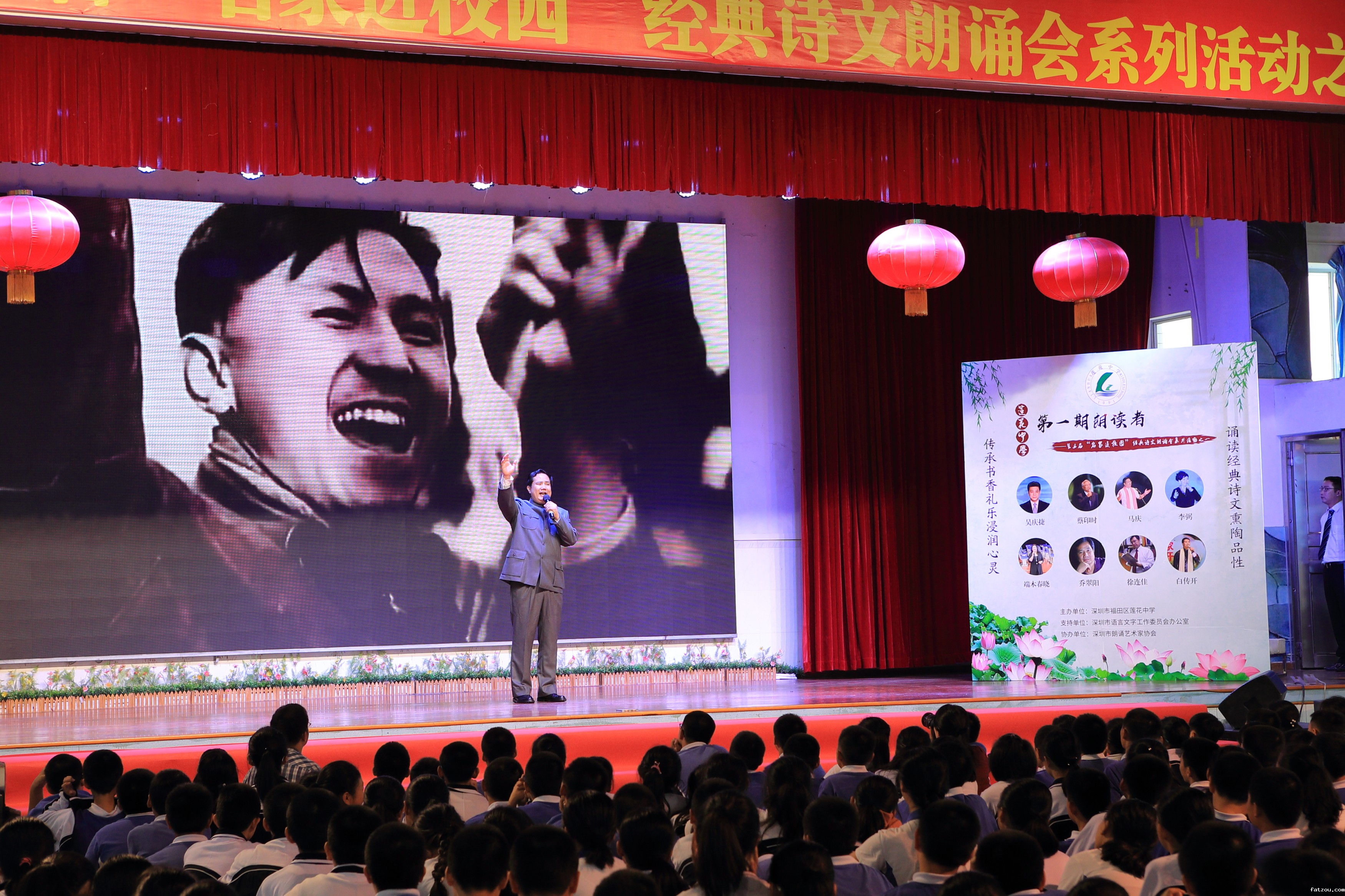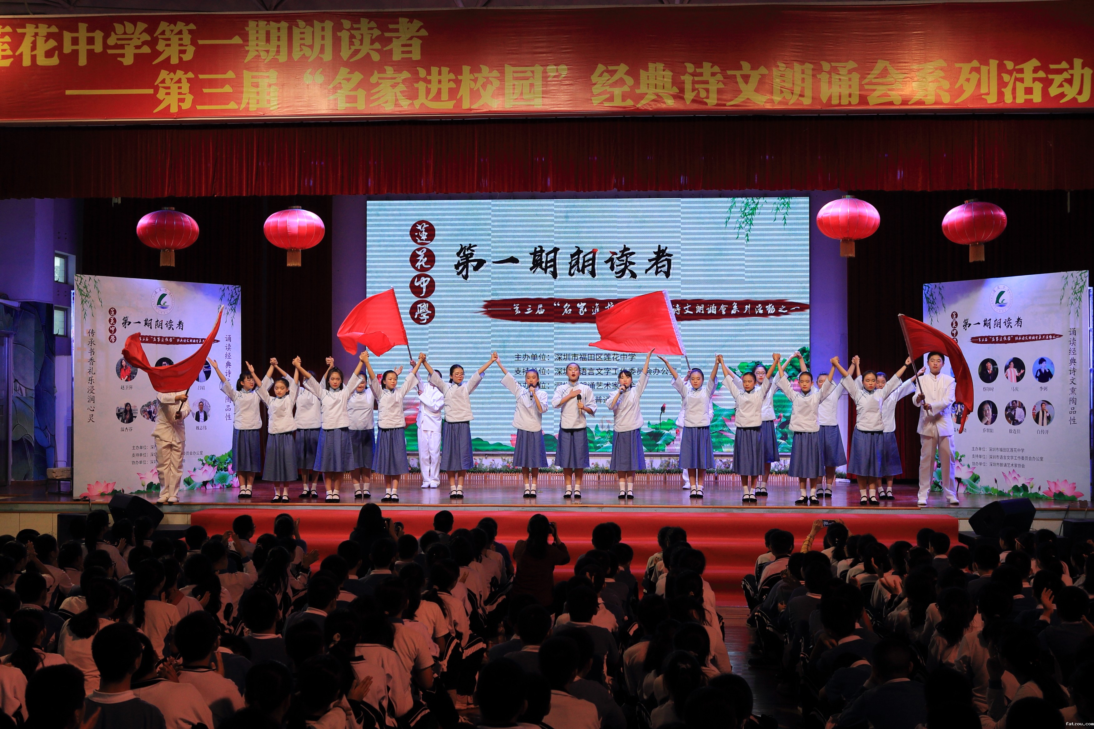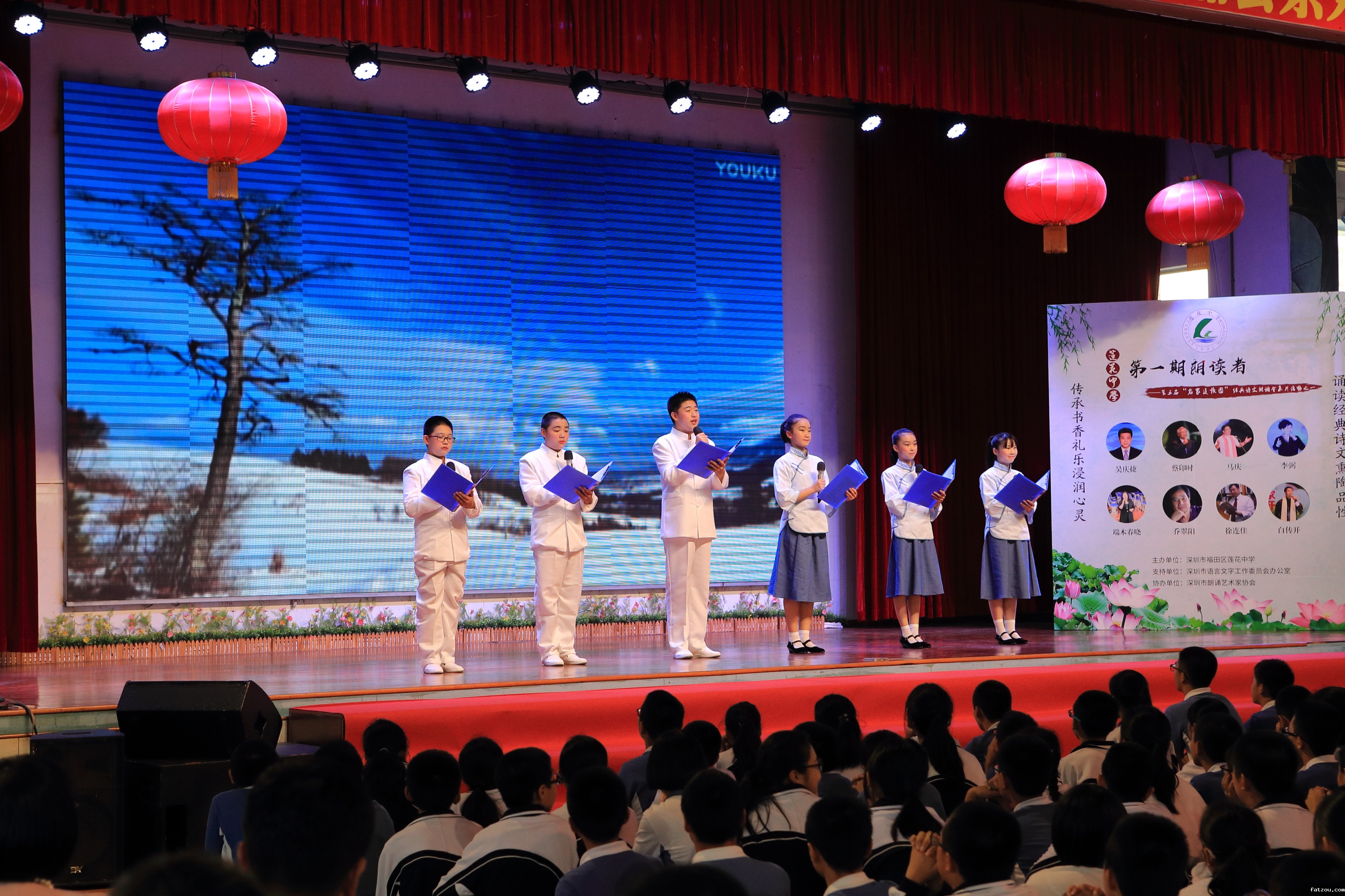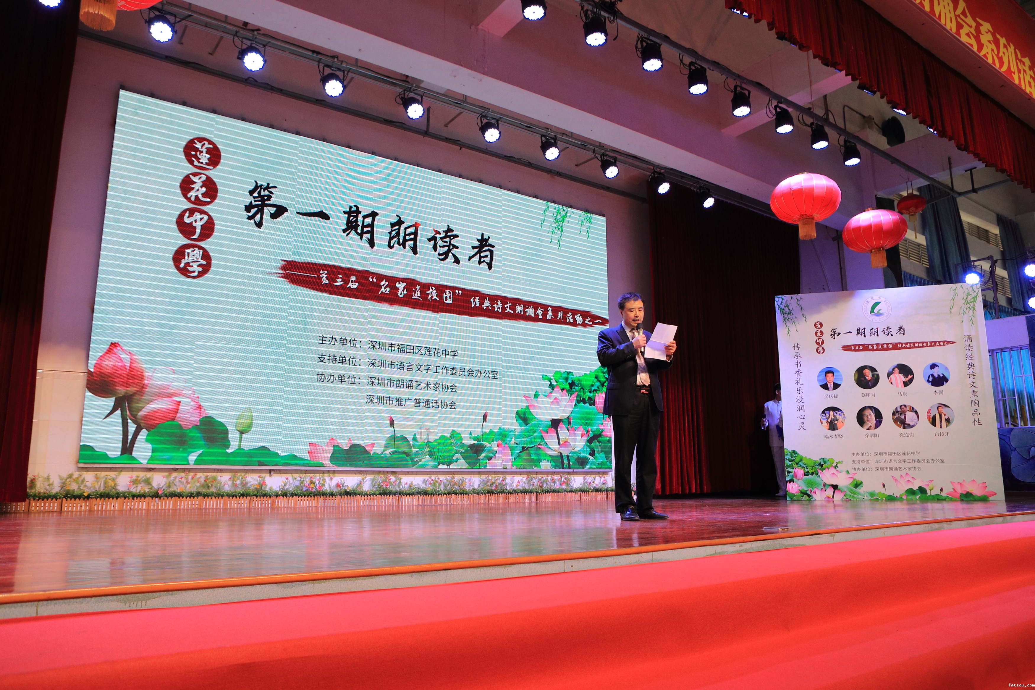 雅言传承文明,经典浸润人生。福田区委教育工委副书记、纪工委书记王海啸同志,福田区教科院副院长杨春生,福田区教育局团委书记杜青霖,福田区教育科学研究院谢晨老师,我校责任督学陈启洪和责任区督学艾巧、冯岚、叶连翔现场指导,周边兄弟学校的校长和老师,莲花二村社区领导,学校家委代表,也参与了本次活动。2017年11月,是深圳市第十八届读书月。我校的这次《朗读者》活动,正是在这种背景下举办,也是我校营造书香校园工作的重要组成部分。