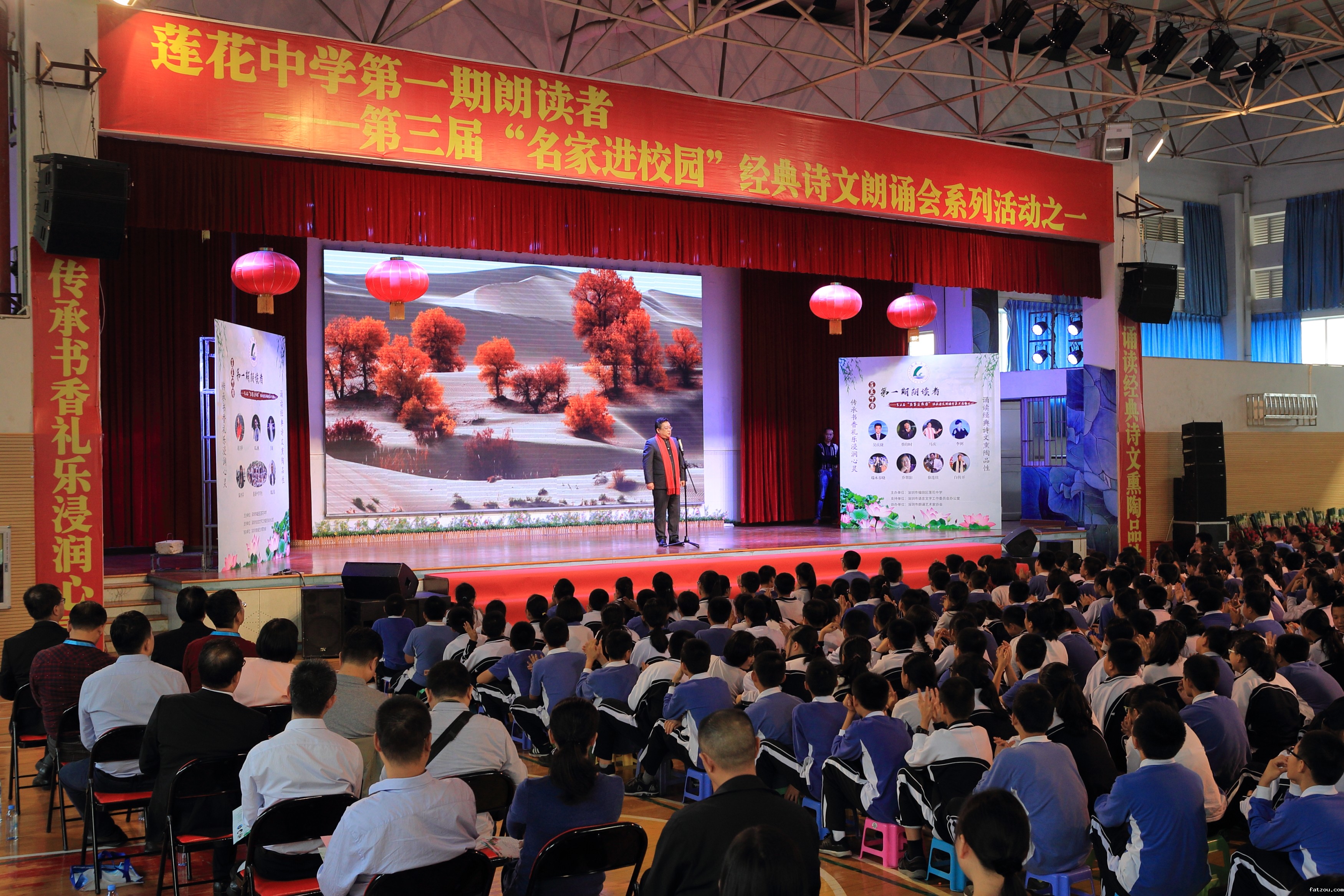 校园新天地,朗读大舞台。2017年11月30日下午,我校第一期朗读者暨第三届“名家进校园”经典诗文朗诵会在体育馆隆重举行,约1500人参与,活动取得圆满成功,反响热烈。
