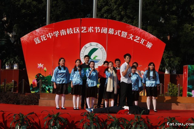 在何俊校长热情澎湃的致辞中,闭幕式正式开始。闭幕式由颁奖仪式和文艺演出两部分组成。本次颁奖仪式主要表彰在文化艺术节期间有突出贡献的学生和老师代表,充分肯定全校师生对文化艺术的追求和努力。随后,文艺演出在绽放力与美的开场舞《桥墩》中拉开序幕。一个个节目精彩纷呈,为现场观众奉献了一场雅俗共赏的视听盛宴:配乐朗诵《中秋家国梦》以优美的旋律,通过中秋传统佳节吟古诵今,表达了当代中学生对祖国母亲的祝福和热爱;小提琴合奏《我爱你中国》充分展示了我校学生的艺术修养和综合素质;学生们的劲歌热舞真切地反应了中学生的时尚和活力;校礼仪队《T台之美》把礼仪和美术优秀作品完美结合;舞台剧《恰同学少年》讲述了五四背景下一群有志青年的救国热情;小品《我要当男主》可爱滑稽,带给观众一阵阵的欢声笑语;十佳歌手的歌曲联唱深情获得了台下观众热烈的掌声。其中外教弹唱《Knocking on Heaven's Door》和英语组女教师的舞蹈《Cupid Shuffle》更是掀起了全场的高潮,台上台下热闹非凡。