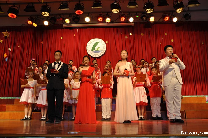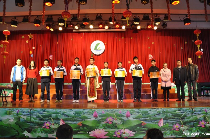 颁奖典礼由团委白传开书记主持。何俊校长做了热情洋溢的致辞,她特别对一个月以来为艺术节各项活动而辛苦付出的所有老师和同学表示衷心的感谢,并对获奖及参加文艺汇演的同学表示热烈的祝贺。德育处胡博副主任宣读了获奖名单。何俊校长、南校区邹业勤校长、办公室王双燕主任、德育处黄斌主任、南校区德育处常小林主任、音乐组周麒麟老师、美术组郭小夫老师等人作为颁奖嘉宾,现场依次颁发了“美术作品一等奖”、“音乐综艺类一等奖”、“校园十佳歌手”、“班级优秀组织奖”四类奖项。