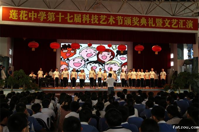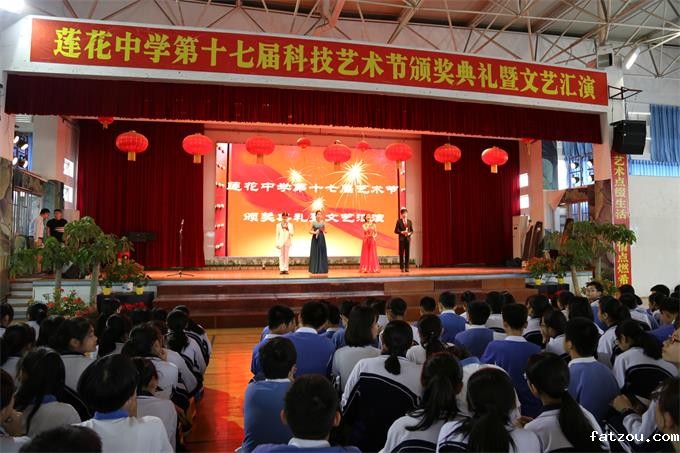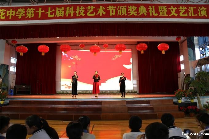 在颁奖典礼中,学校领导向获得各项目特等奖的同学颁发奖状,并授予相应校园称号。在文艺汇演中,音乐、舞蹈、语言等项目比赛的优秀作品逐一展演,我校李丽萍、曲蕾、符婉贞等三位老师也向同学们一展歌喉,展示了我校教师的音乐素养和魅力。